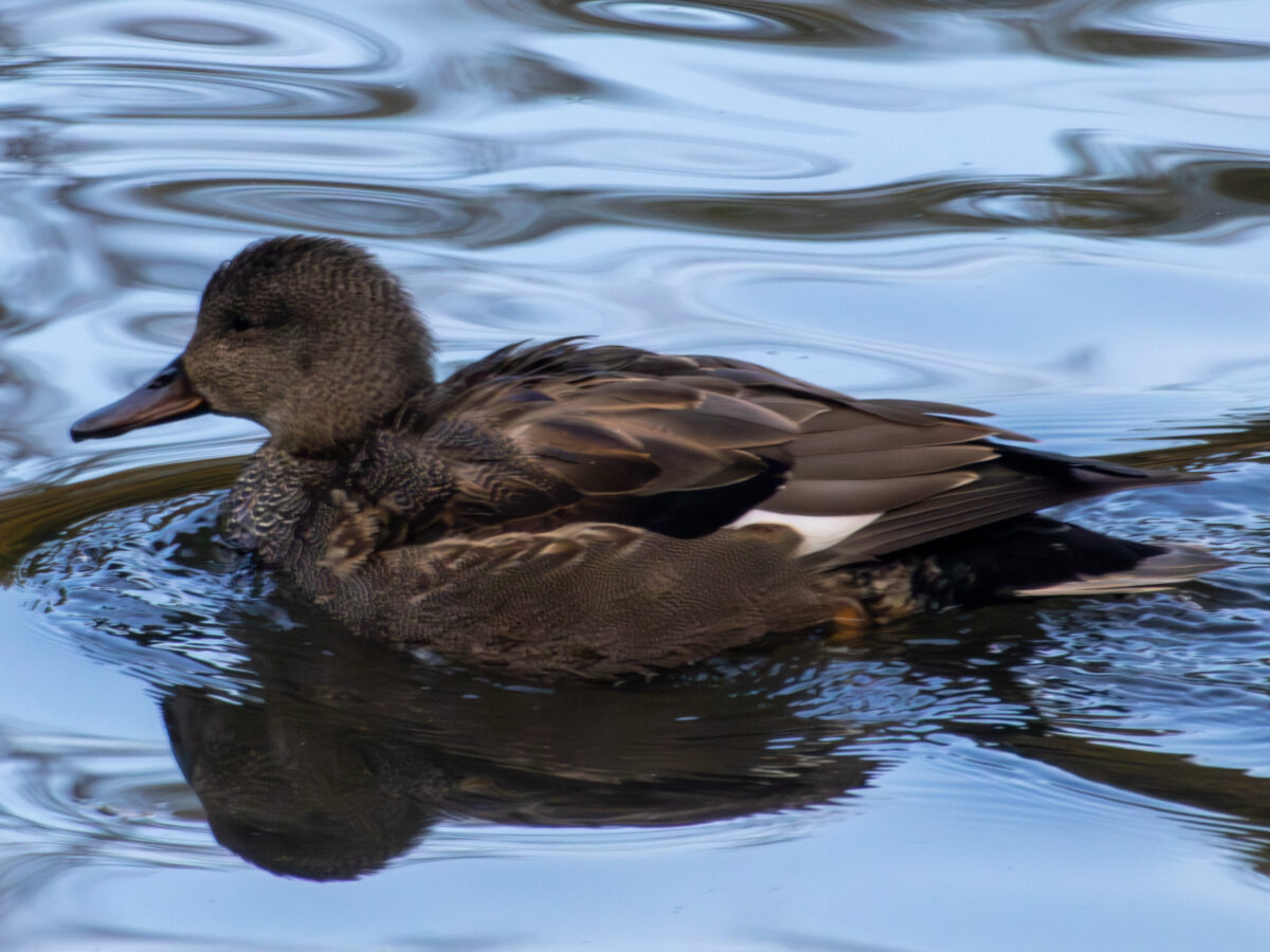 メスはマガモのメスに似ていますが嘴の黒い部分が先端まであり、大きな三列風切羽があります