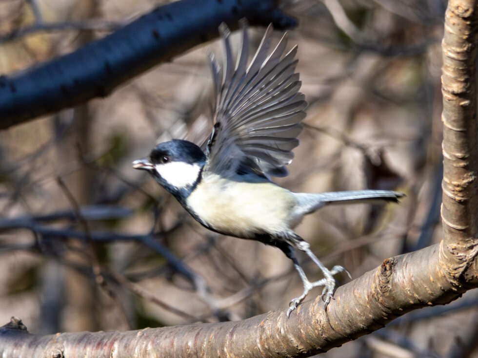 枝の間をちょこちょこと動き回るエナガを発見