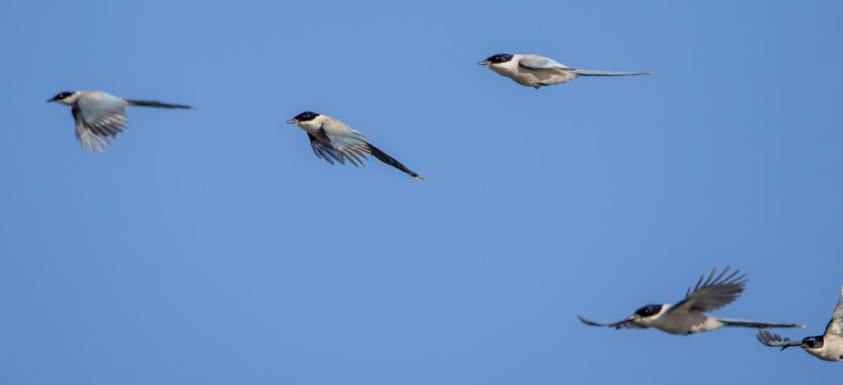群れで一斉に飛ぶと羽ばたき方がよくわかります